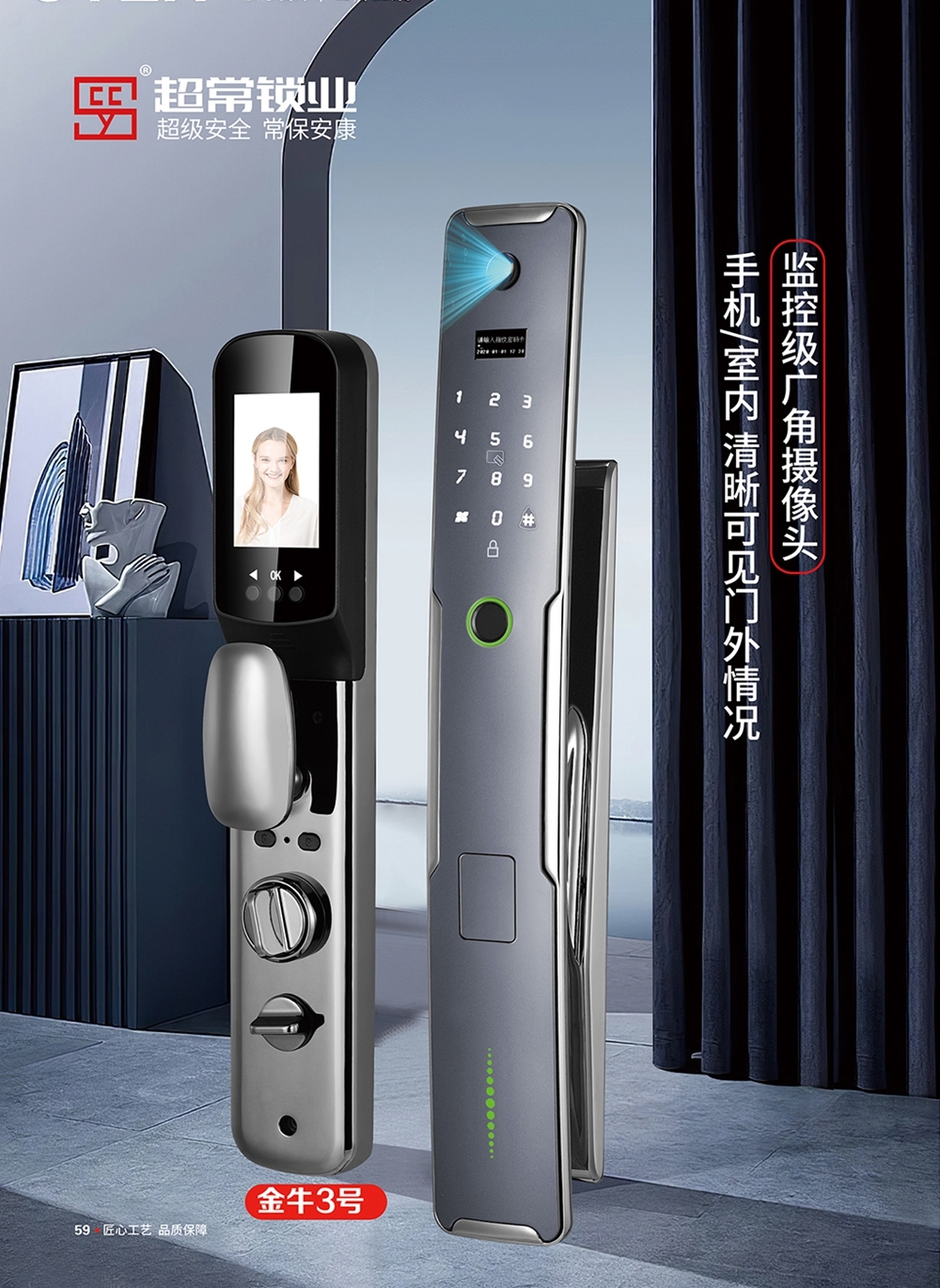 产品型号:金牛3号猫眼款/普通款-智能锁系列