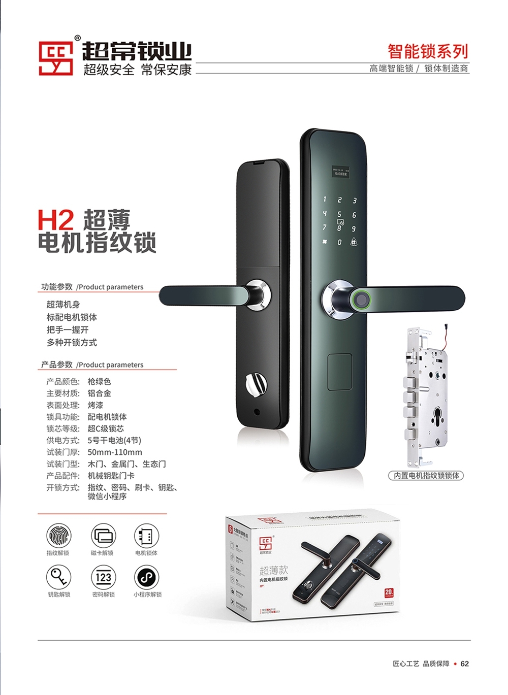 产品型号:H2超薄电机指纹锁-智能锁系列(1)